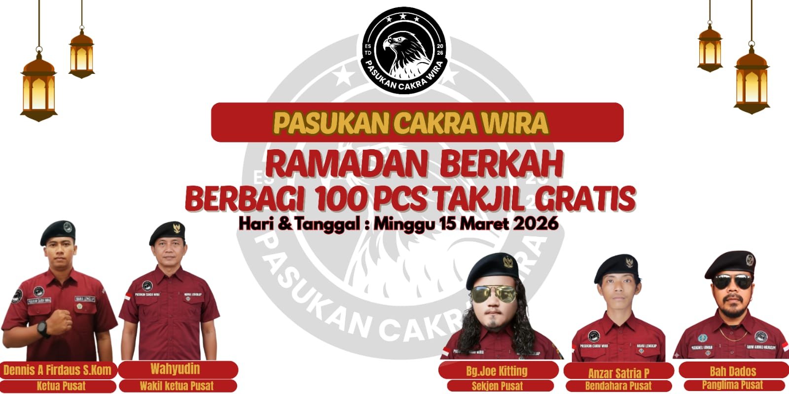Karawang | Radarnusanews.com – Semangat berbagi di bulan suci Ramadan kembali ditunjukkan oleh Dewan Pimpinan Pusat (DPP) Perkumpulan Pasukan Cakra Wira dengan menggelar aksi sosial berbagi takjil gratis kepada masyarakat, Minggu (15/3/2026).