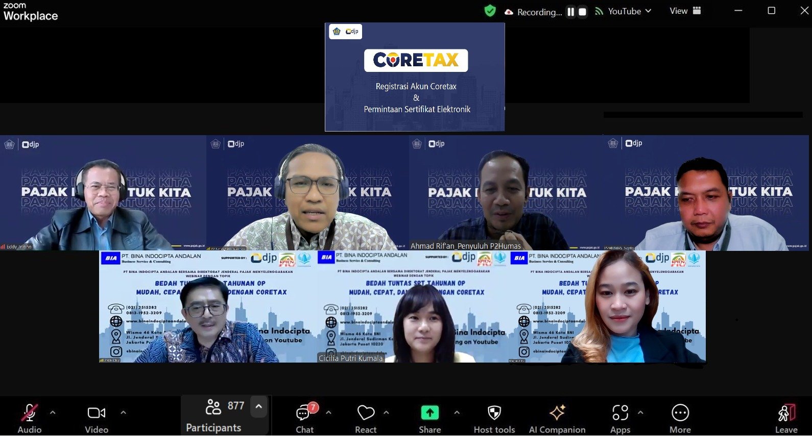 Melalui kegiatan webinar ini, PT. Bina Indocipta Andalan berharap dapat meningkatkan pemahaman dan kemampuan para peserta dalam memanfaatkan teknologi Coretax, sehingga proses pelaporan SPT Tahunan Orang Pribadi dapat dilakukan lebih efisien dan tepat waktu.