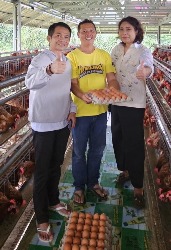 Dalam peninjauan tersebut, Bupati melihat langsung kondisi kandang, sistem pemeliharaan, serta proses produksi telur yang dikelola oleh masyarakat desa.