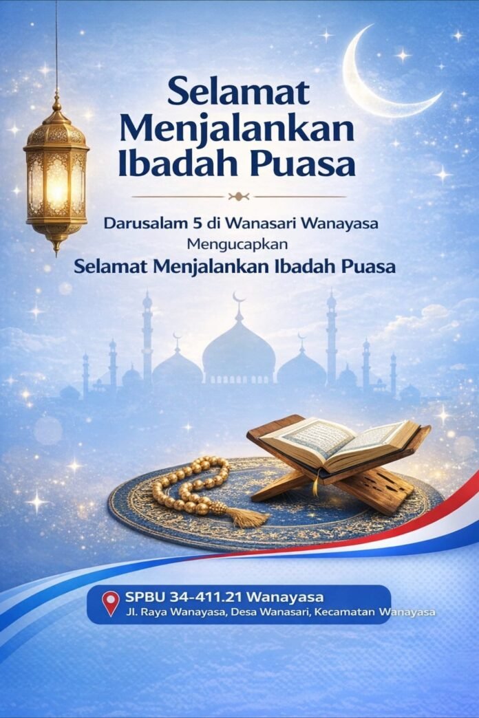 Dalam rangka menyambut datangnya bulan suci Ramadan 1447 Hijriah, Darusalam 5 yang berlokasi di SPBU 34-411.21 Wanasari, Jl. Raya Wanasari, Desa Wanasari, Kecamatan Wanayasa, menyampaikan ucapan selamat menjalankan ibadah puasa kepada seluruh umat Muslim.