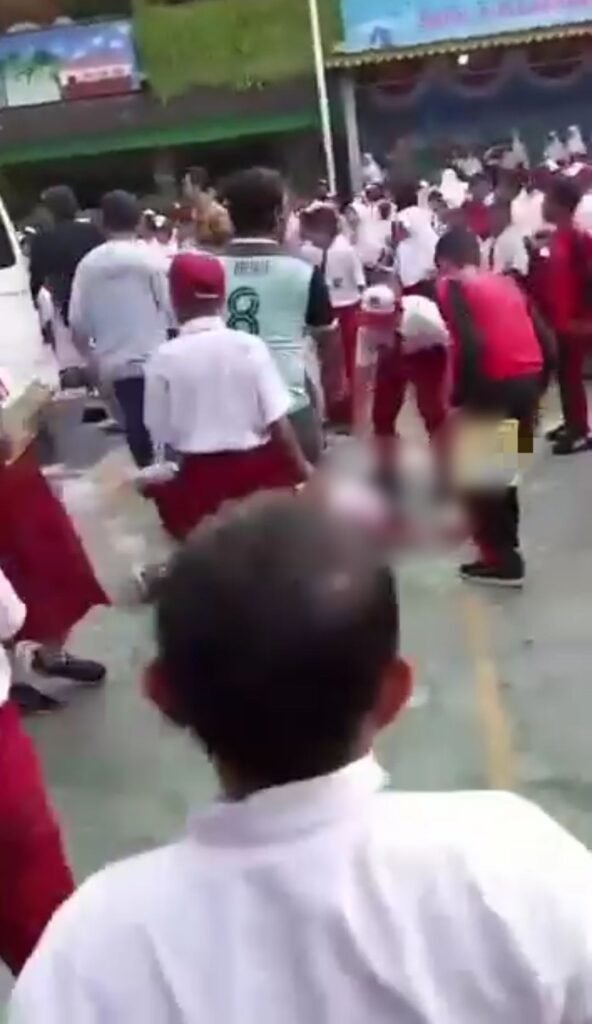 Teriakan panik langsung terdengar. Beberapa siswa terjatuh akibat benturan, sementara guru dan warga sekolah berusaha cepat menarik siswa ke tempat aman. Suasana yang semula penuh aktivitas belajar berubah menjadi kepanikan saat para korban dievakuasi satu per satu.
