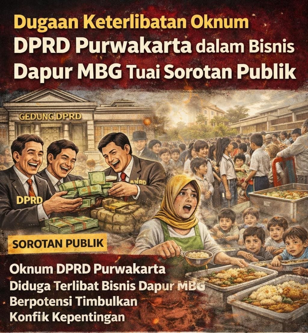 Pasalnya, muncul dugaan adanya keterlibatan oknum anggota DPRD Purwakarta dalam bisnis dapur MBG, yang dinilai berpotensi menimbulkan konflik kepentingan.