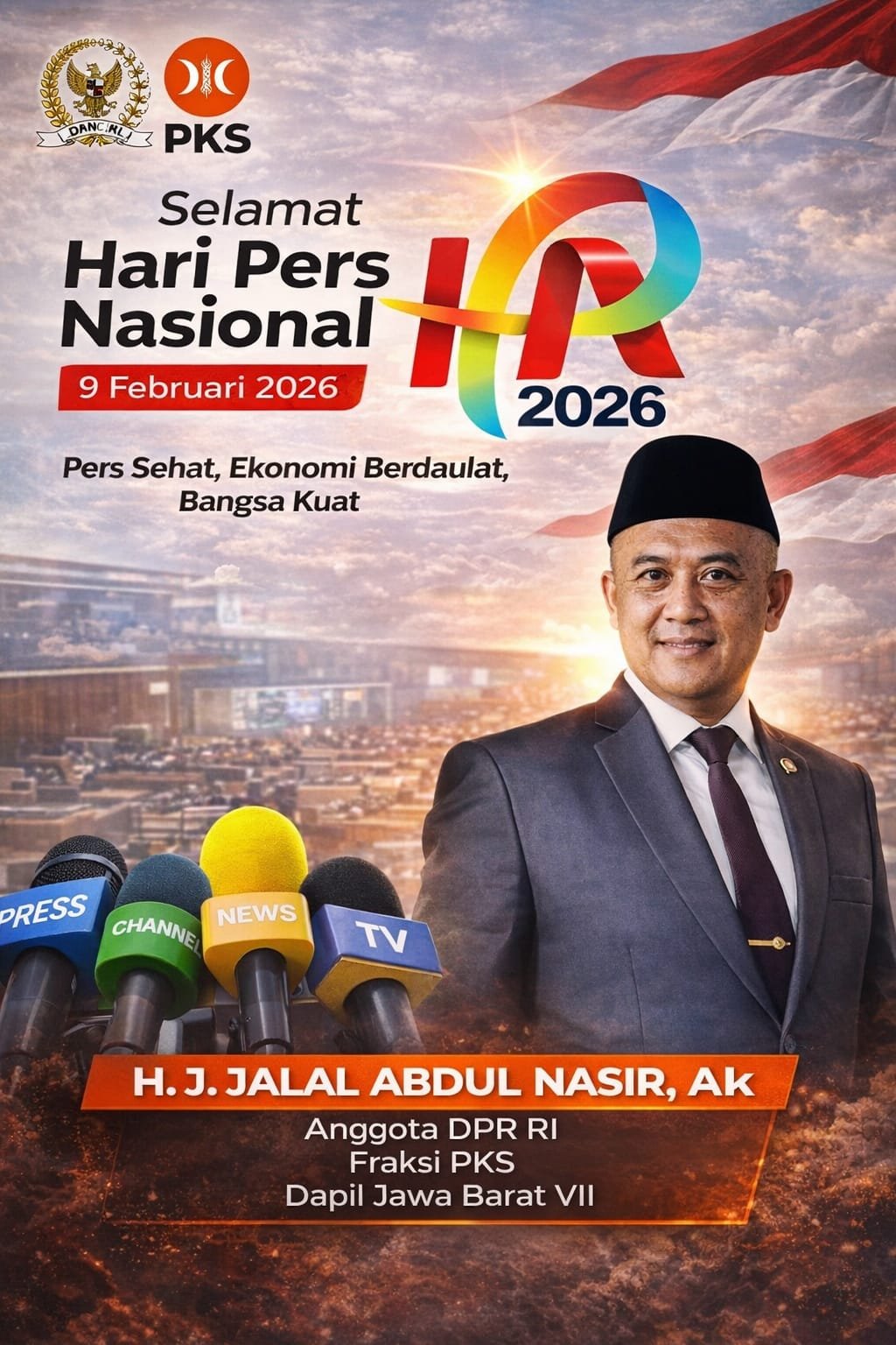 Anggota DPR RI dari Fraksi PKS Dapil Jawa Barat VII, Haji Jalal Abdul Nasir, menegaskan bahwa peringatan Hari Pers Nasional (HPN) setiap 9 Februari merupakan momentum reflektif bagi bangsa Indonesia untuk kembali meneguhkan peran strategis pers dalam kehidupan demokrasi.
