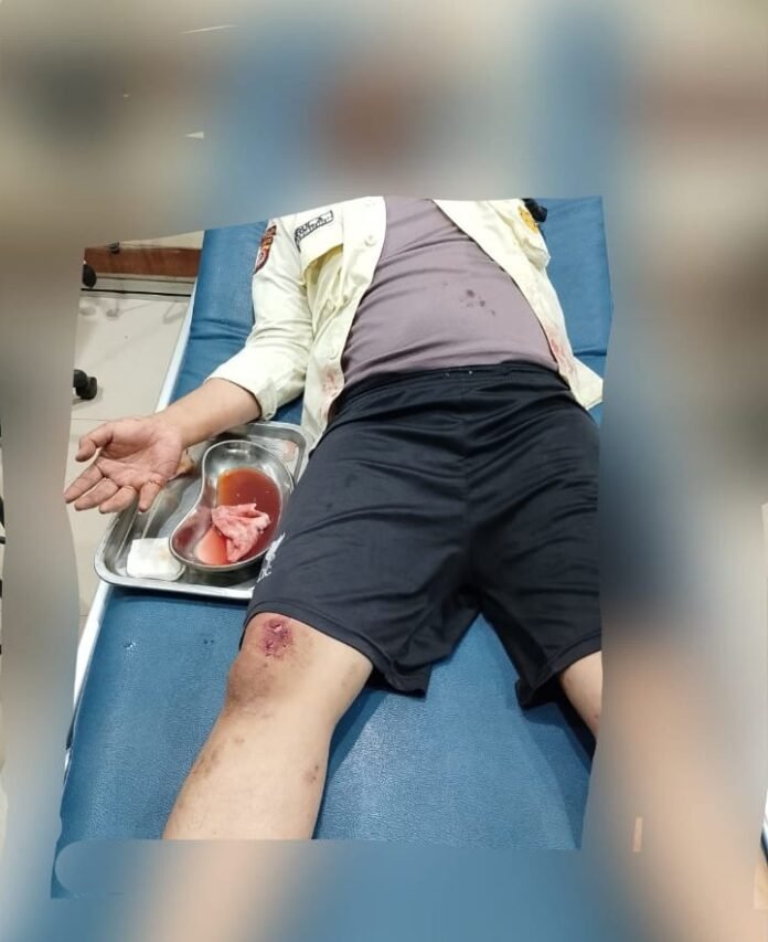 Korban laka yang mana sepeda motor roda dua masuk jalan yang berlobang hinga ( JN ) 41 mengalami luka luka ringan.