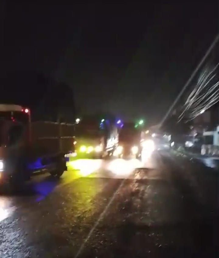Jalan raya Nasional lintas propinsi jalur Pantura Cikampek Jatisari kini ruksak parah dan berlobang yang mana dari paktor cuaca tinggi  curah hujan intensitas yang sangat tinggi Karawang 23/01/2026.