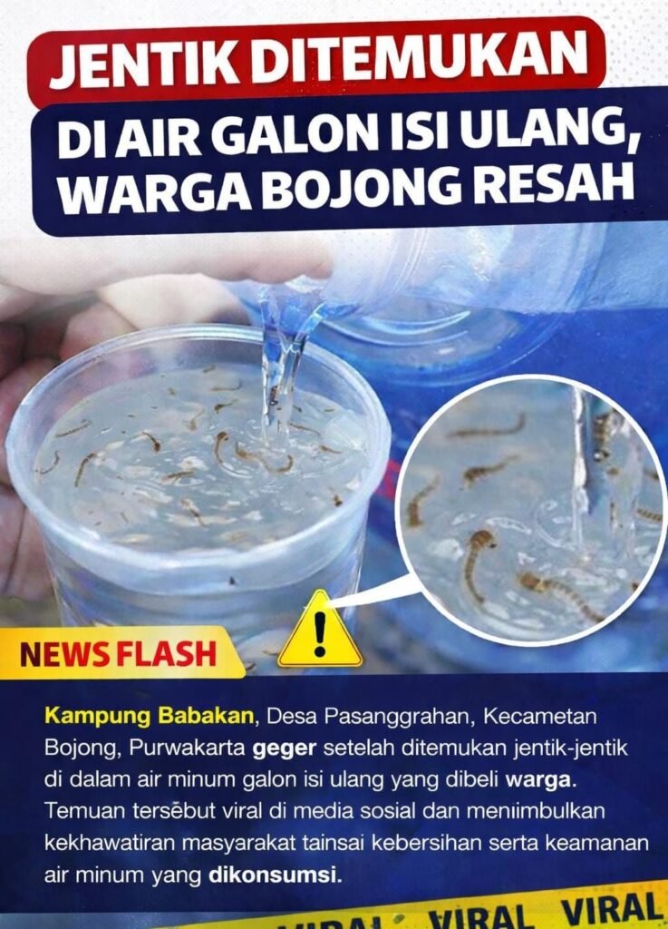 Purwakarta | Radarnusanews.com  –  Warga Kampung Babakan RT 008/RW 004, Desa Pasanggrahan, Kecamatan Bojong, Kabupaten Purwakarta dihebohkan dengan temuan jentik-jentik di dalam air minum galon isi ulang yang dibeli dari salah satu penjual air minum di wilayah tersebut.