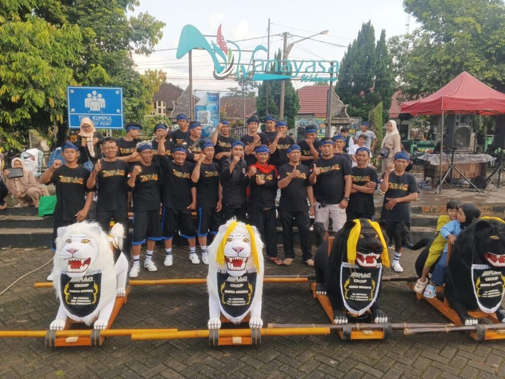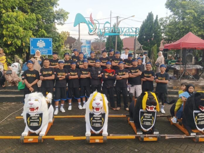Dengan balutan seragam hitam dan ikat kepala biru, para anggota tampil kompak dan penuh semangat. Properti sisingaan berbentuk singa yang mereka tampilkan menjadi daya tarik utama, sekaligus mencerminkan kekuatan, keberanian, dan kekompakan dalam kesenian khas Sunda tersebut.