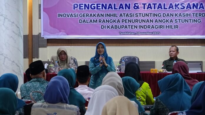Ketua TP-PKK Kabupaten Indragiri Hilir, Hj. Katerina Susanti, menghadiri sekaligus menjadi narasumber pada acara Pengenalan dan Tatalaksana Inovasi GINTAS “Gerakan Indragiri Hilir Atasi Stunting” dan KASIH TERDAHSYAT yang digelar di salah satu hotel di Tembilahan, Jumat siang 5 Desember 2025. Kegiatan ini ditaja oleh Dinas Pengendalian Penduduk, Keluarga Berencana, Pemberdayaan Perempuan dan Perlindungan Anak (DP2KBP3A) Kabupaten Indragiri Hilir.