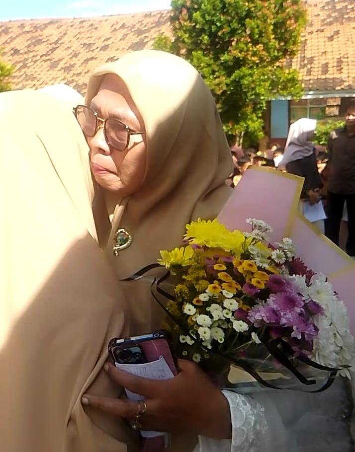 ketika Mc memanggil nama Ibu Saodah untuk menyampaikan pesan, sontak para siswa sangat kompak dengan tepuk tangan sangat meriah , namun seketika berubah suasana menjadi hening ,saat Hj Saodah menyampaikan pesan perpisahan suaranya yang biasa tegas kini terdengar bergetar diselingi air mata yang tak tertahankan ” terima kasih anak anak ku bertahun tahun saya berada disini sekolah ini bukan hanya tempat untuk bekerja tapi sudah menjadi rumah kedua bagi saya , setiap senyum siswa setiap kerja keras guru dan setiap dukungan orang tua adalah kenangan yang akan selalu saya simpan di hati, dan kini kalian sudah ada kepala sekolah baru sama seperti ibu ” ujar Hj Saodah lirih dengan mata berkaca -kaca
