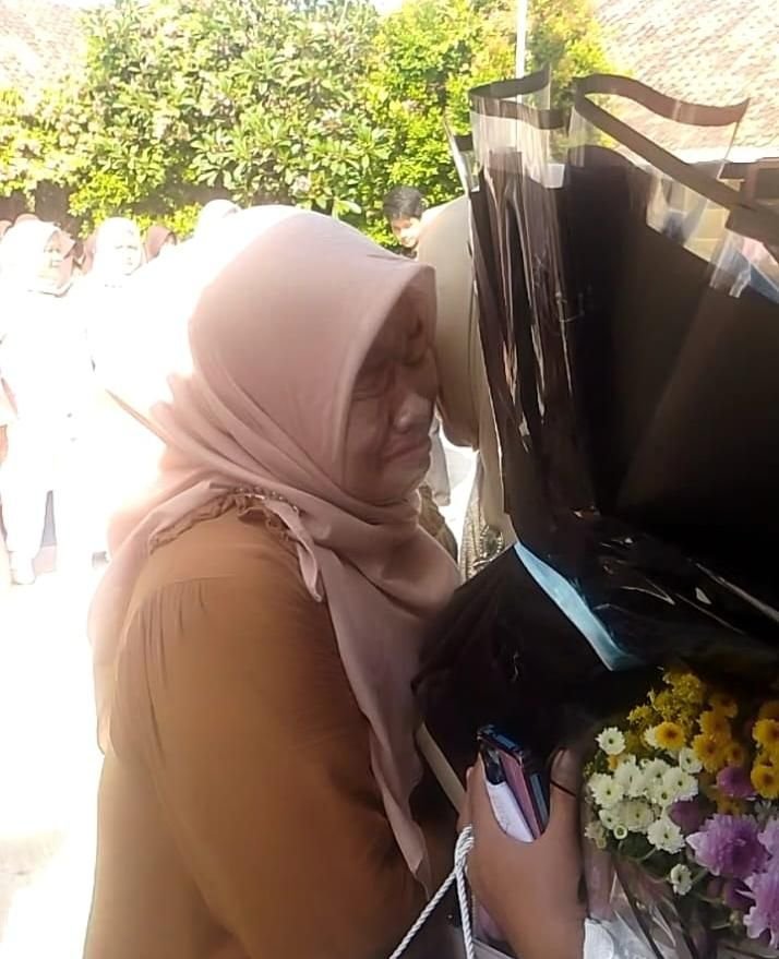 ucapan beliau disambut dengan tangisan dari seluruh hadirin siswa siswa yang dengan dengan beliau berlarian memeluk dan ada juga yang bersalaman serta memberikan surat cintanya dari para siswa mereka tak ingin melepaskan sosok yang menjadi ibu kedua bagi mereka , tak sedikit para guru juga tak kuasa menahan air mata mengingat akan dedikasi dan pengabdian serta kasih sayang yang telah diberikan selama memimpin