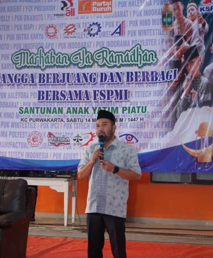 Purwakarta | Radarnusanews.com – Sebagai bentuk kepedulian sosial dan mempererat persaudaraan dimasyarakat Federasi Serikat Pekerja Metal Indonesia (FSPMI) menggelar acara bakti sosial , Santunan anak yatim di delapan desa yang ada di kabupaten purwakarta , Sabtu 14.Maret 2026