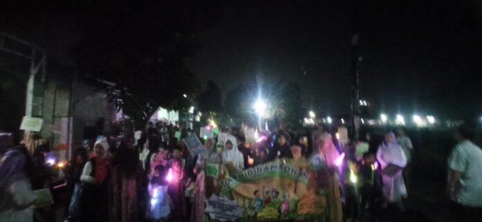 Didesa pangulah baru ratusan warga mengikuti pawai obor keliling kampung sambil melantunkan selawat Nabi Muhammad SAW dan diiringi tabuhan rebana dari remaja masjid.
