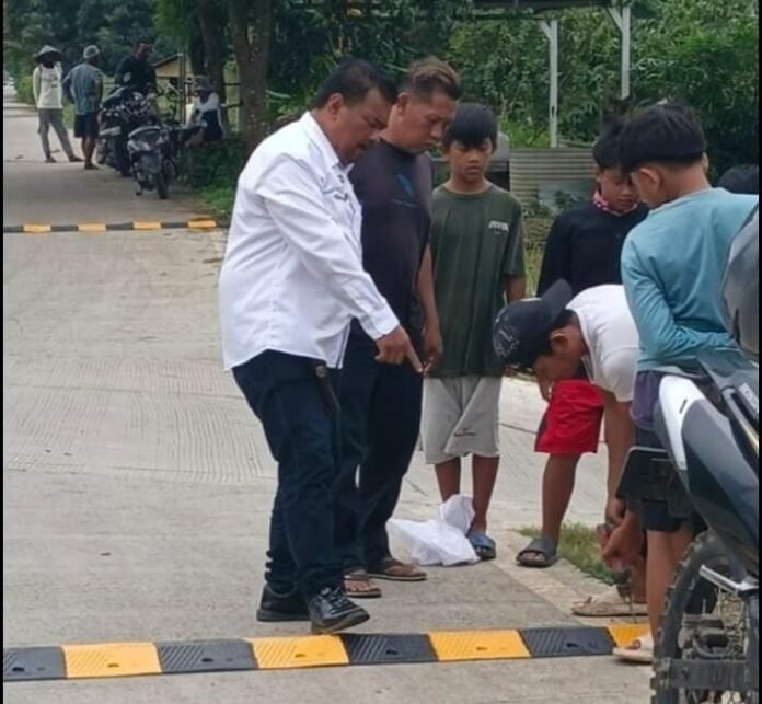 alat speed bump ini bertujuan untuk memperlambat laju kendaraan baik dilingkungan maupun diperempatan sehingga diharapkan dapat mengurangi risiko kecelakaan lalu lintas dijalan tersebut ” kata kepala Desa Pangulah Baru , Karnalim kepada Media saat pemasangan Speed bump , Rabu 11 pebuari 2026