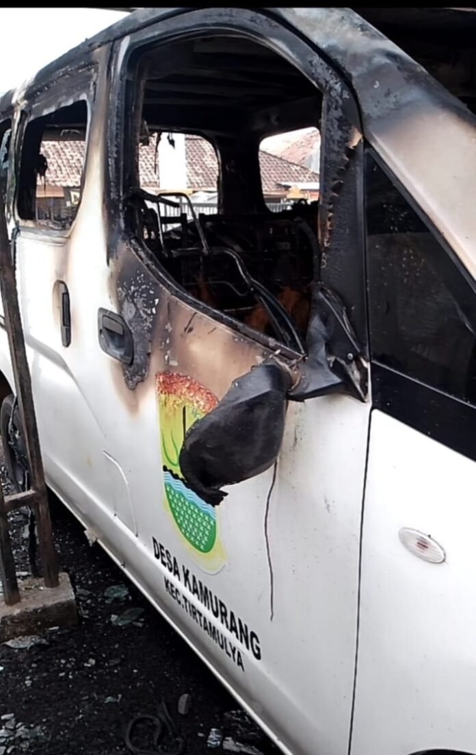 Karawang | RadarNusaNws.Com – sebuah mobil dinas yang dipergunakan untuk operasional di wilayah desa Kamurang Kecamatan Tirtamulya dikabarkan terbakar hingga bagian dalam habis diduga akibat anak -anak yang bermain blonsom yang bahan peledak nya menggunakan bensin atau spirtus