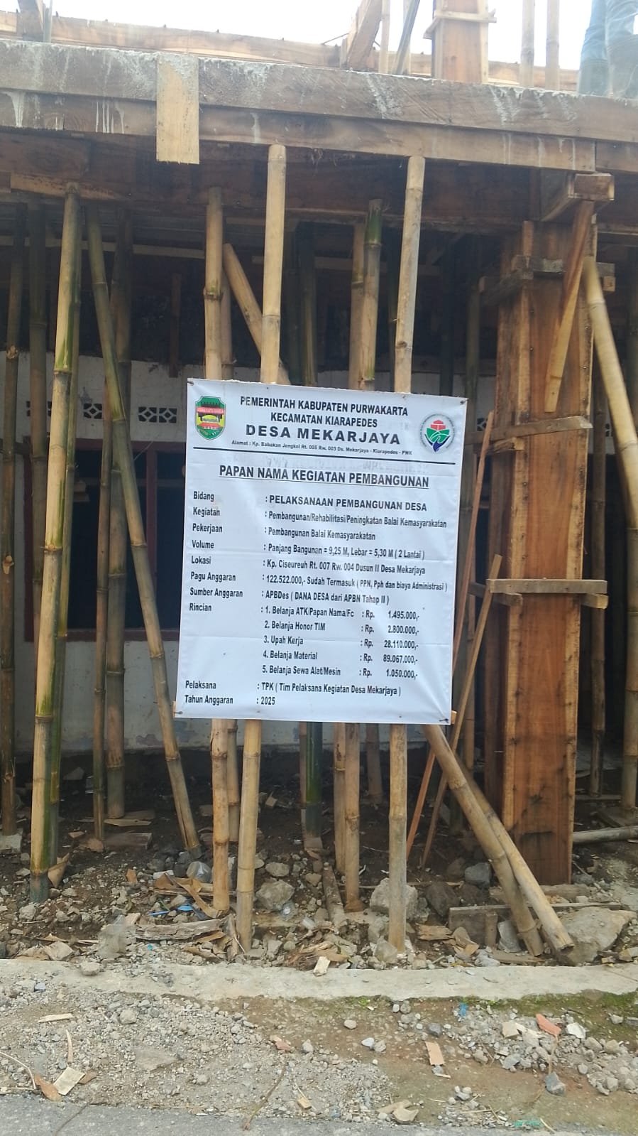 Purwakarta | RadarNusaNews.Com – Pemerintah Desa Mekarjaya, Kecamatan Kiarapedes, Kabupaten Purwakarta, tengah melaksanakan pembangunan Balai Kemasyarakatan sebagai bagian dari program peningkatan fasilitas publik melalui Dana Desa Tahun Anggaran 2025.