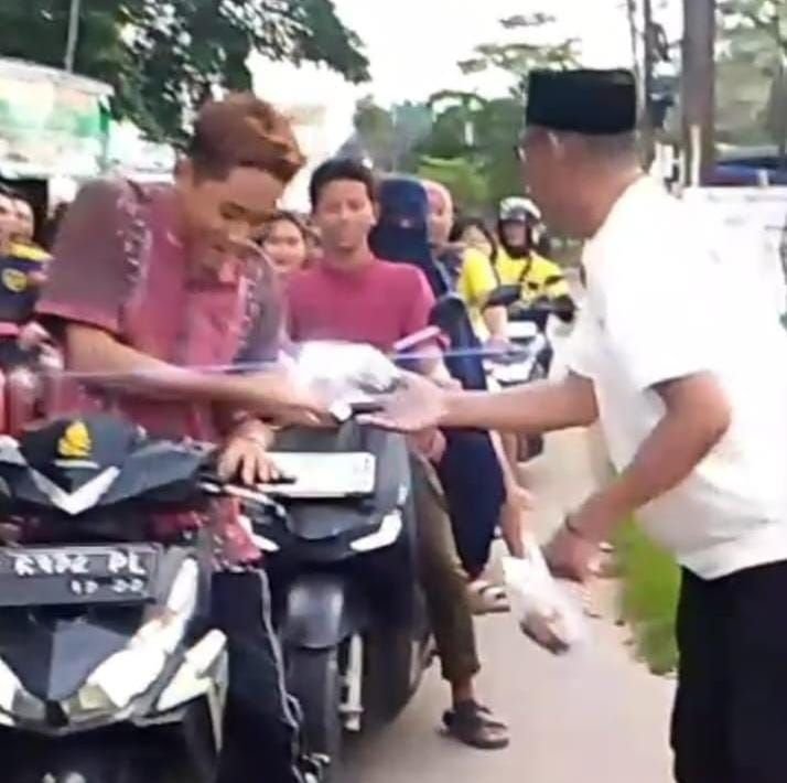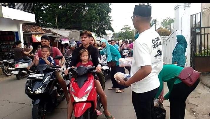 pemerima takjil warga yang melintas di depan kantor balai desa wanci mekar