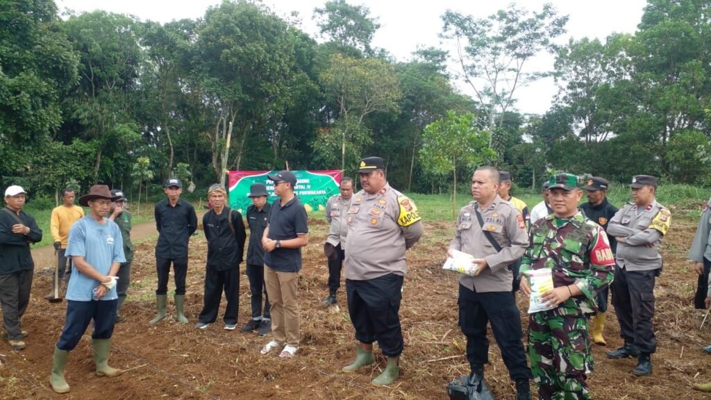 Purwakarta | RadarNusaNews.Com – Dalam rangka mendukung program ketahanan pangan nasional, Polres Purwakarta melalui Polsek Bojong melaksanakan kegiatan penanaman jagung hibrida secara serentak di lahan pertanian seluas 4.000 meter persegi, yang berlokasi di Kampung Ciawi RT 17 RW 06, Desa Sindangpanon, Kecamatan Bojong, Kabupaten Purwakarta, Rabu (29/10/2025).