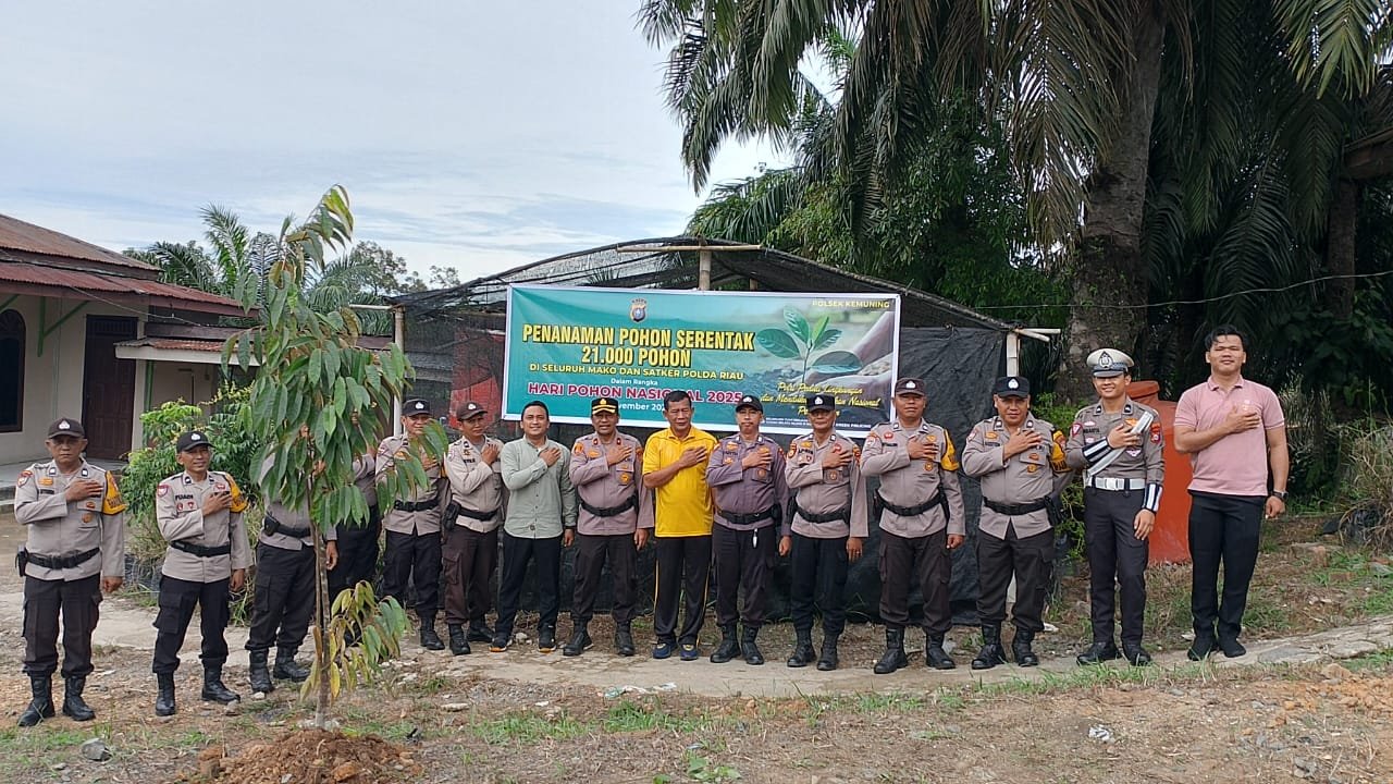 Dalam rangka memperingati Hari Pohon Nasional 2025, Kepolisian Daerah Riau melalui seluruh Mako dan Satker, termasuk Polsek Kemuning, menggelar kegiatan Penanaman Pohon Serentak sebanyak 21.000 bibit. Kegiatan ini menjadi bagian penting dari implementasi Program Green Policing yang digagas oleh Kapolda Riau sebagai upaya memperkuat kepedulian Polri terhadap pelestarian lingkungan dan penghijauan.