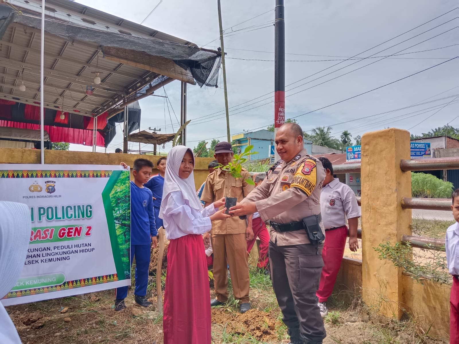 Polsek Kemuning Tanam Pohon Serentak dan Edukasi Cinta Lingkungan di SDN 012 Keritang Hulu, Wujudkan Green Policing Polda Riau