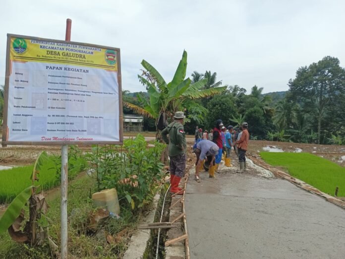 Masyarakat Desa Galudra, Kecamatan Pondok Salam, Kabupaten Purwakarta, kini dapat menikmati hasil pembangunan infrastruktur jalan berupa cor beton yang tengah dilaksanakan di wilayah setempat.