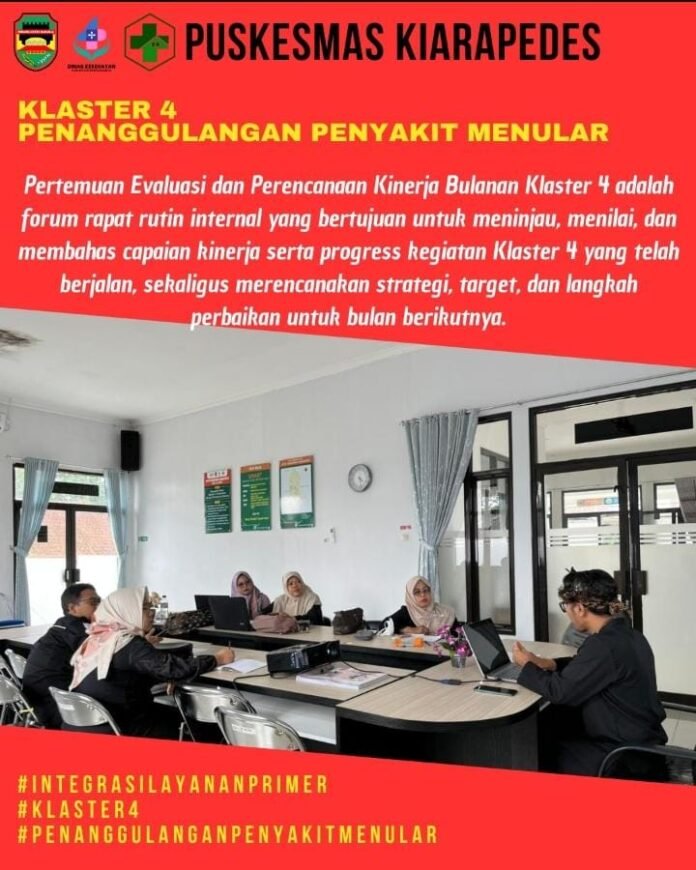 UPTD Puskesmas Kiarapedes melaksanakan Pertemuan Evaluasi dan Perencanaan Kinerja Bulanan Klaster 4 Penanggulangan Penyakit Menular pada Rabu (4/2/2026).