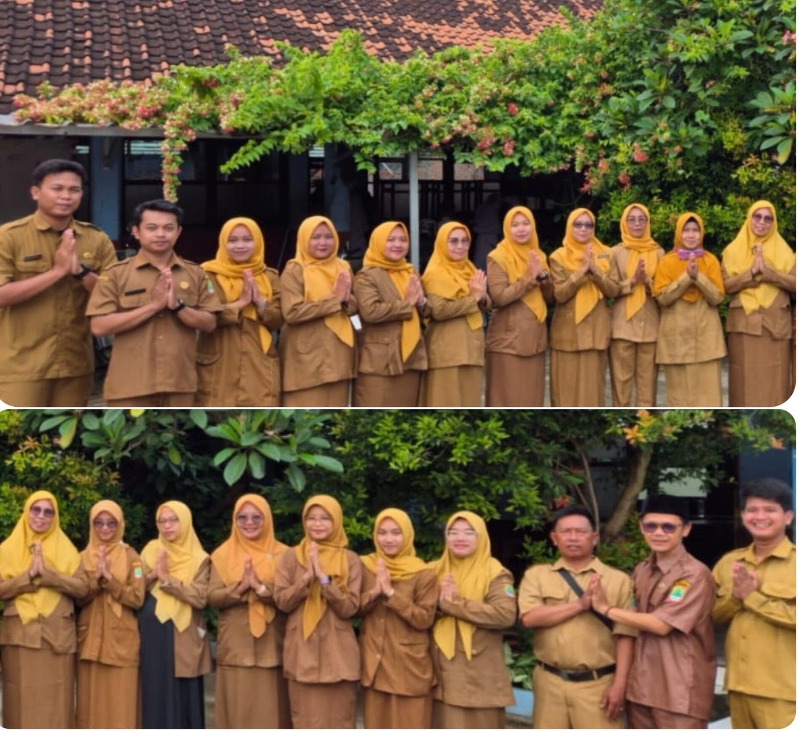 Acara halal bihalal yang diikuti seluruh warga sekolah mulai dari siswa guru hingga staf tata usaha berlangsung dihalaman sekolah setelah melakukan upacara bendera