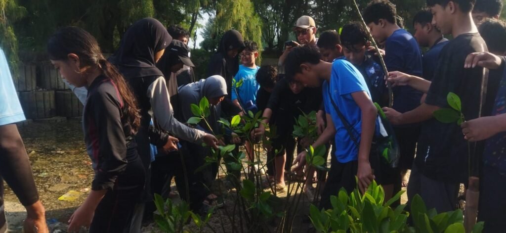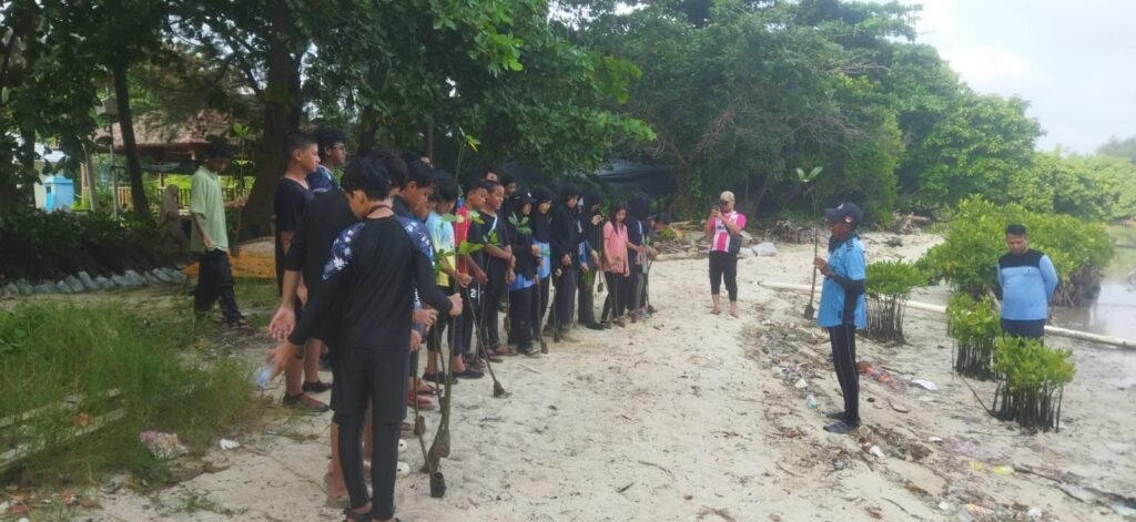 Tidak hanya teori, para siswa juga melakukan aksi nyata. Mereka berkesempatan menanam 50 bibit mangrove yang disediakan oleh SDA, serta menanam 100 bibit terumbu karang dari GROUP PENUNGGUL (pemuda peduli lingkungan)
