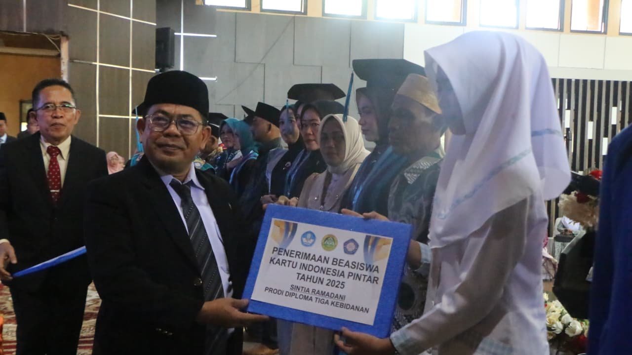 Pada akhir acara, Asisten Pemerintahan dan Kesra bersama pemangku kepentingan terkait, memberi apresiasi kepada lulusan terbaik dan lalukan penyerahan simbolis program bantuan pendidikan pemerintah melalui beasiswa Kartu Indonesia Pintar (KIP). ( Yanti )