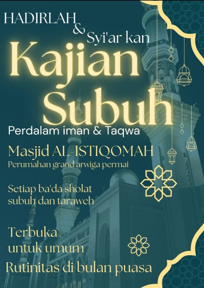 Menyambut bulan suci Ramadan, Masjid Al-Istiqomah yang berlokasi di Perumahan Grand Arwiga Permai, Desa Pangulah Selatan, Kecamatan Kotabaru, Kabupaten Karawang, menggelar kegiatan rutin Kajian Subuh yang terbuka untuk masyarakat umum.