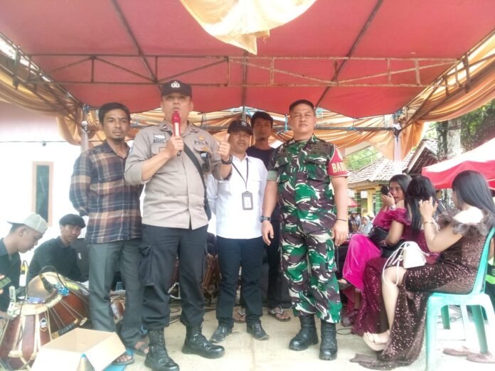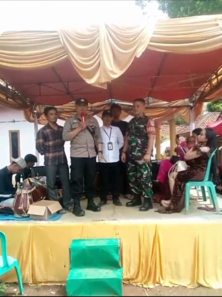 Bhabinkamtibmas Desa Sindangpanon, Aipda Agus Imamunandar dari Polsek Bojong Polres Purwakarta, bersama Babinsa Sertu Rudi Hartono dari Koramil 1903 Darangdan Kodim 0619, serta Satpol PP Kecamatan Bojong yang diwakili oleh Cecep KS BKO Satpol PP Kecamatan Bojong, hadir di tengah masyarakat untuk memastikan kegiatan berjalan aman dan kondusif.