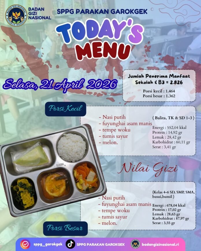 Purwakarta | Radarnusanews.com – Satuan Pelayanan Pemenuhan Gizi (SPPG) Parakan Garokgek di wilayah Purwakarta terus menjaga kualitas menu harian dengan menghadirkan makanan bergizi seimbang bagi para penerima manfaat.