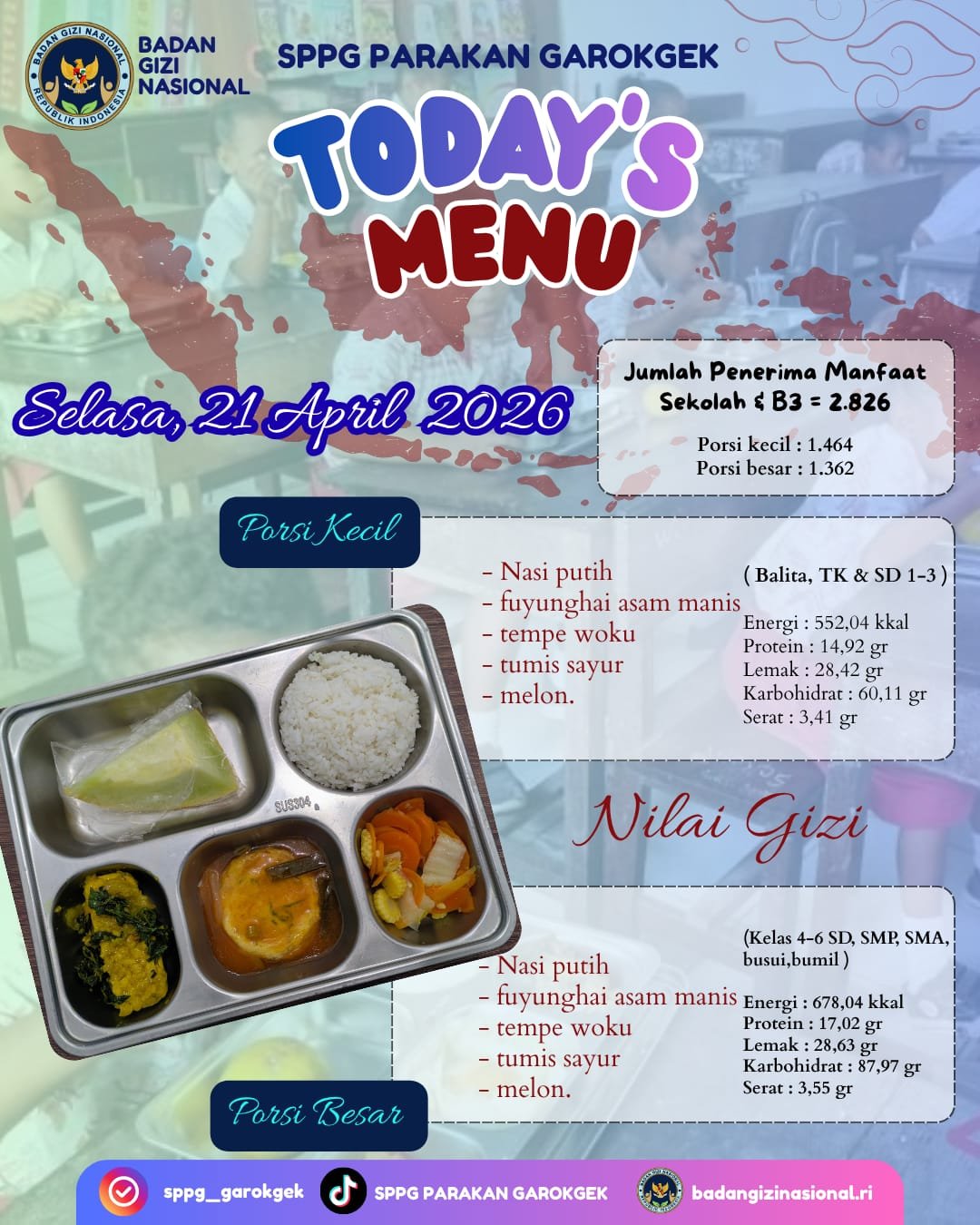 Dengan variasi buah yang konsisten dan menu yang terus diperbarui, SPPG Parakan Garokgek diharapkan mampu mendukung peningkatan kesehatan serta tumbuh kembang optimal bagi generasi muda di Kabupaten Purwakarta.( Red )