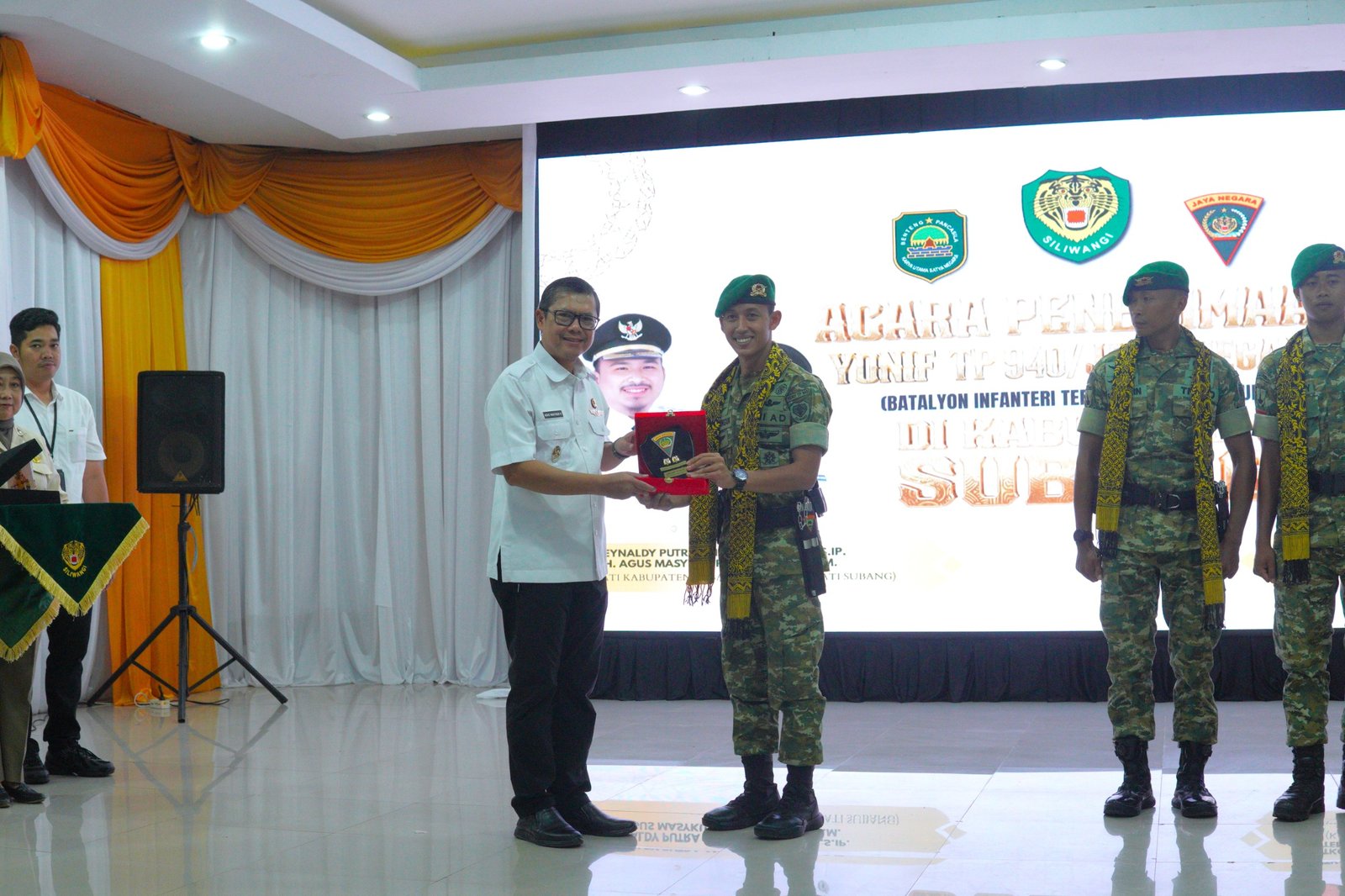 Subang | Radarnusanews.com – Wakil Bupati Subang Agus Masykur Rosyadi menghadiri sekaligus melaksanakan penerimaan Batalyon Infanteri Teritorial Pembangunan 940/Jaya Negara (Yonif TP 940/JN) di Kabupaten Subang, yang berlangsung di Aula Oman Syahroni, Rabu (22/04/2026).
