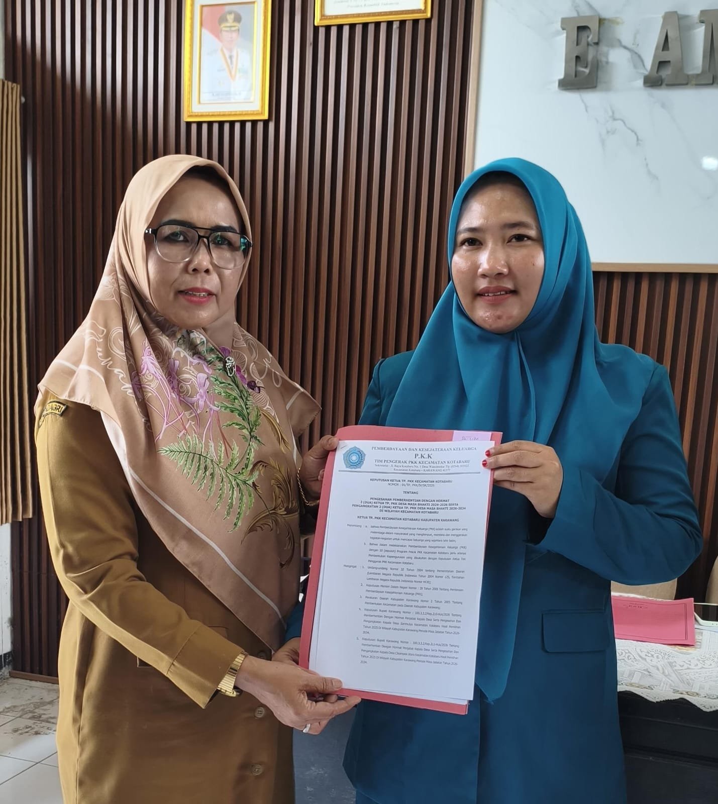 Karawang | radarnusanews.com – Acara Pelantikan Pengurus Tim penggerak Pemberdayaan dan Kesejahteraan Keluarga ( PKK) desa Cikampek utara kecamatan Kotabaru masa bakti 2026-2033 telah berlangsung dengan khidmat , dalam kesempatan tersebut Camat Juga melantik Ketua PKK Desa Sari Mulya , bertempat di Aula Kecamatan , selasa 7 April 2026