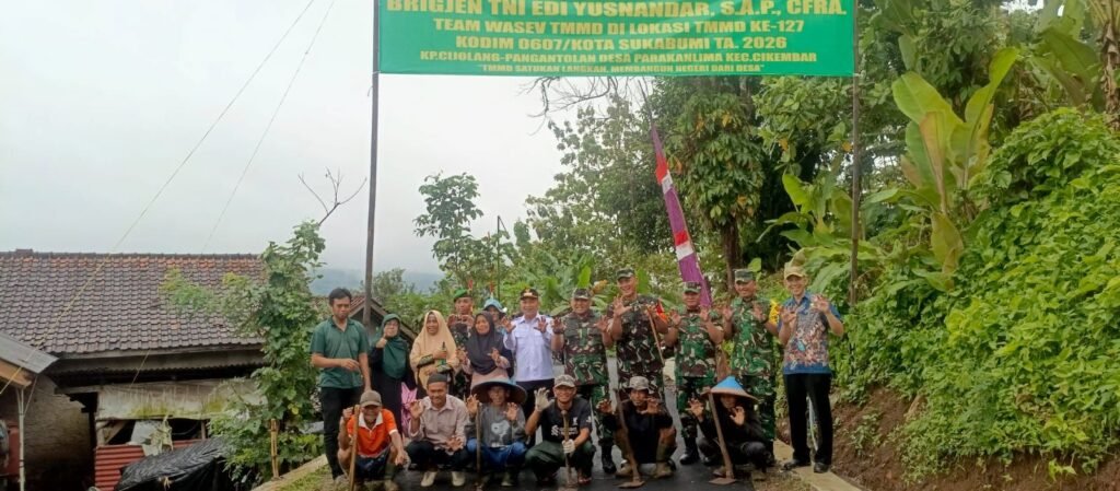 Sukabumi, 5 Maret 2026 | Radarnusanews.com – Tim Pengawasan dan Evaluasi (WASEV) Mabesad yang dipimpin Brigjen TNI Edy Yusnandar, S.A.P., CFra selaku Irjen Itjenad sekaligus Ketua Tim WASEV TMMD ke-127 Tahun 2026, melakukan kunjungan langsung ke lokasi kegiatan di Desa Parakanlima, Kecamatan Cikembar, Kabupaten Sukabumi.
