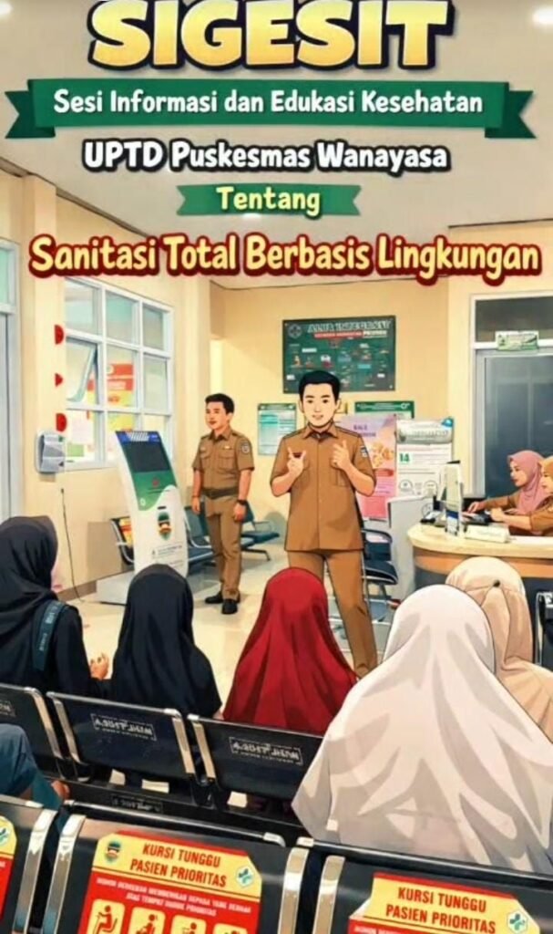 UPTD Puskesmas DTP Wanayasa, Kabupaten Purwakarta, melaksanakan kegiatan SIGESIT (Sesi Informasi dan Edukasi Kesehatan) dengan tema Sanitasi Total Berbasis Lingkungan (STBM).
