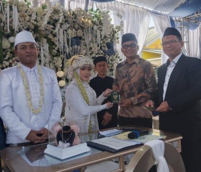 Wujud Kedekatan Dengan Masyarakat ,Kades Wanci mekar Kotabaru  H Dimyat Sudrajat Hadiri Resepsi Pernikahan